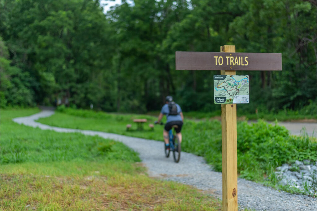Mountain bikers have plenty to choose from in the Gateway Trails. There are more than 14 miles of trail on the ground now, and that total will more than triple as new projects come online. Bikers and runners can do laps by climbing Jarrett Creek, a gravel road, and descending the flowy trails of Jarrett’s Run or Betty’s Run back to the trailhead.